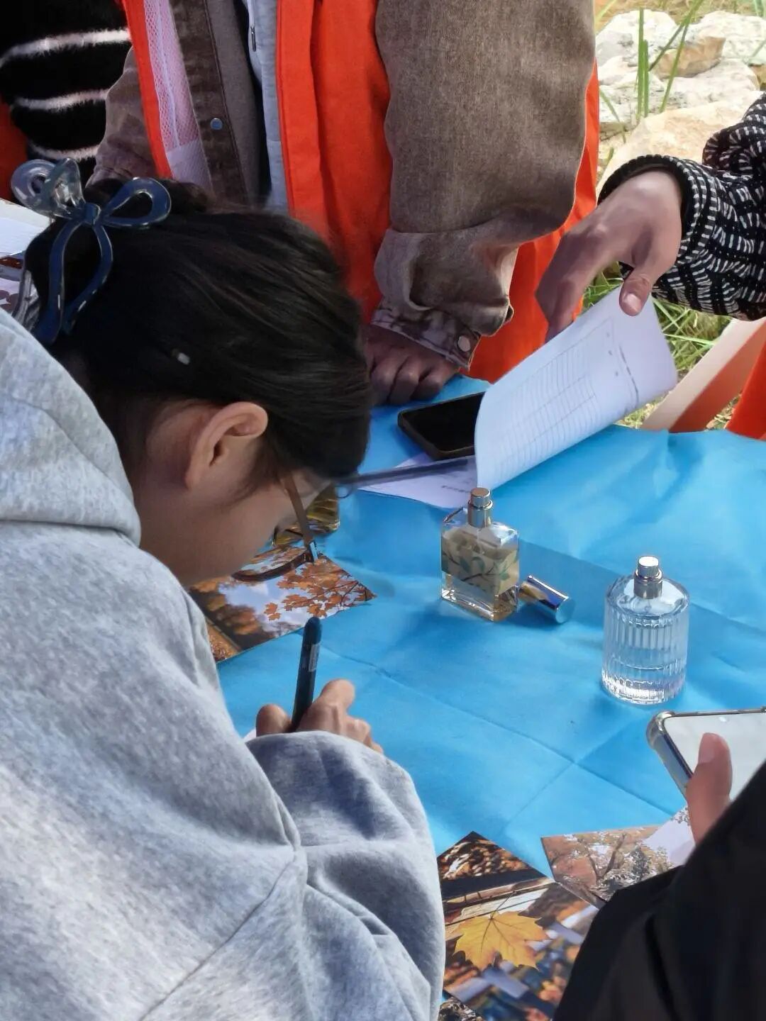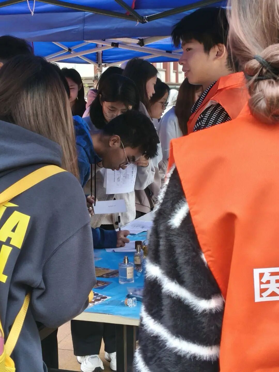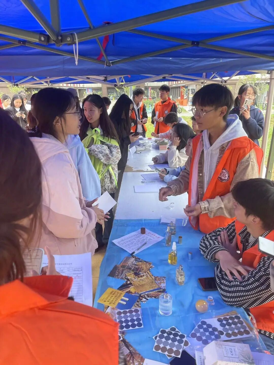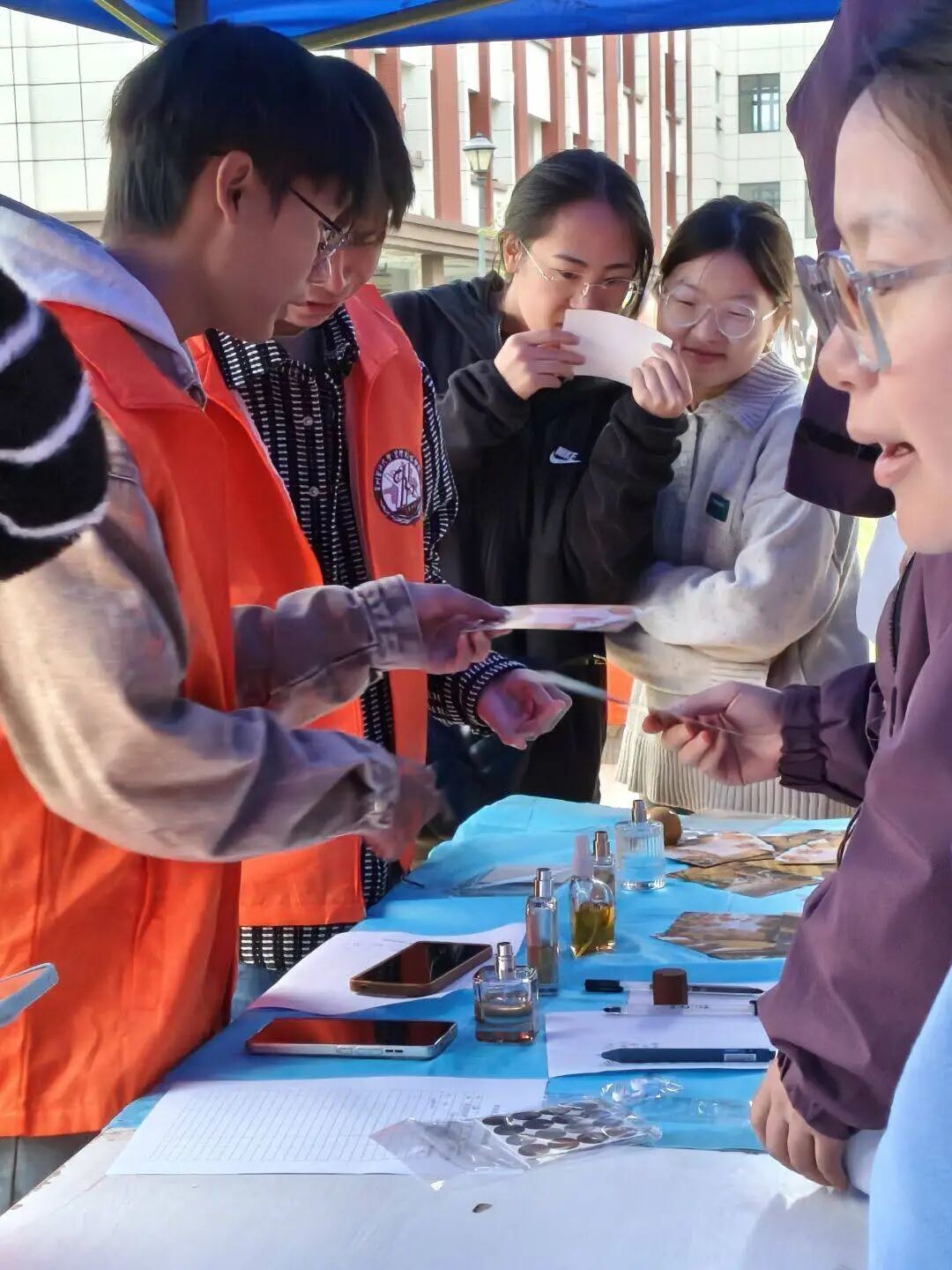 “气味邮局”前,同学们好奇地嗅着香精油,猜着秋天的味道——是桂花的甜、银杏的涩、秋雨的清、橘子的酸,还是菊花的淡雅?猜对味道并写下寄语的同学们,开心地领取了香水小样,那些温暖的寄语,将随秋风蔓延到整个校园,传递秋日的祝福。