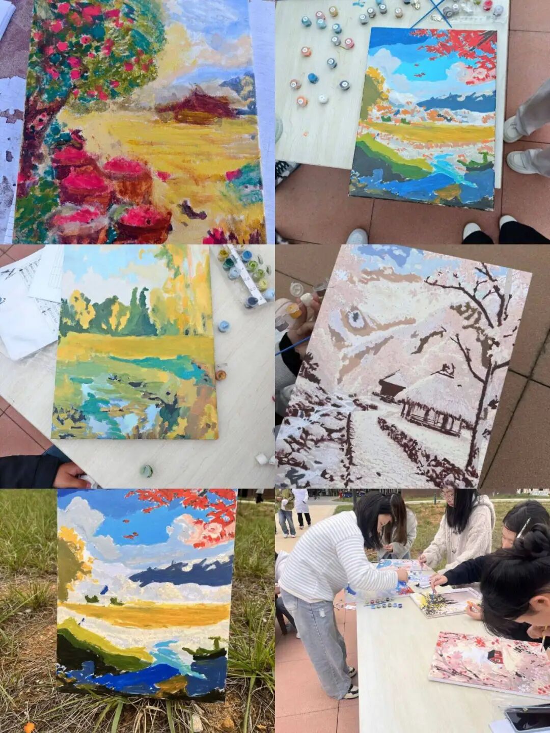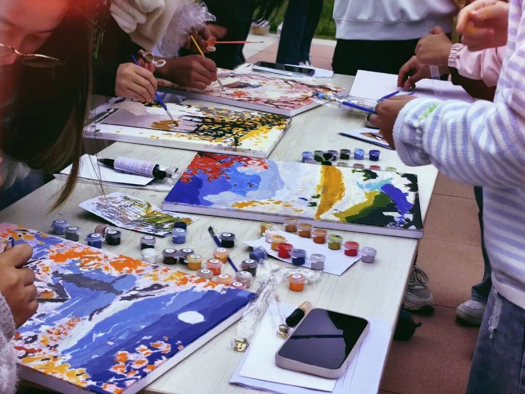 秋天数字油画DIY区,大家专注地涂着色彩,一幅幅秋景在笔下诞生。完成后,大家拍照留念,同学们带着自己的作品满意离去,把秋天的浪漫带回珍藏。