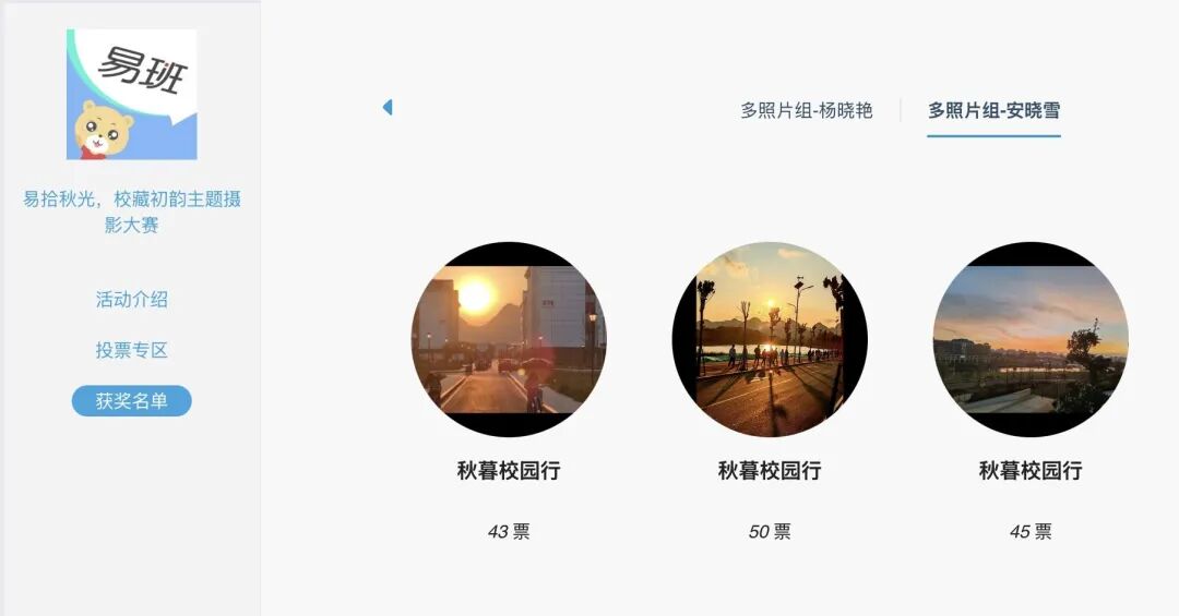 线上活动中,同学们用镜头定格秋日瞬间——银杏的黄、枫叶的红、湖面的倒影、猫咪的慵懒……每一张照片都诉说着秋日的故事,投票环节更是火热,精美好礼已找到它们的主人!