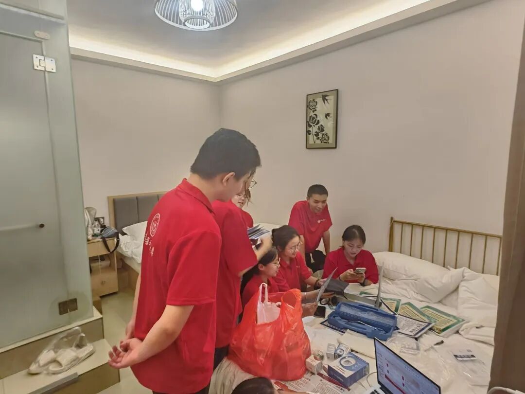 7月12日,实践队化身“健康使者”,在群丰村开展“理论+实践”立体服务。医疗小课堂上,队员们讲解高血压防治、蛇虫急救等知识;义诊台前,为百余名村民提供血压血糖检测与慢性病咨询;入户走访中,向留守老人赠送常备药包,并手把手示范养生操。活动累计服务100余人次,以专业与温度筑牢乡村健康防线。