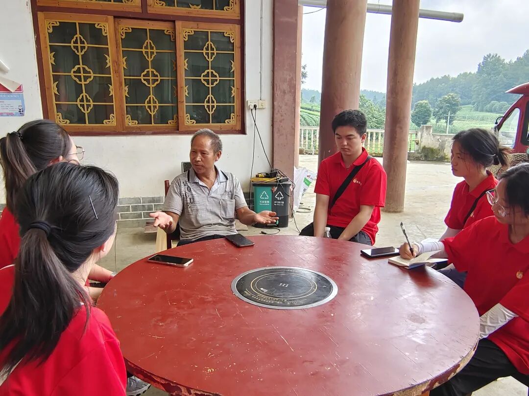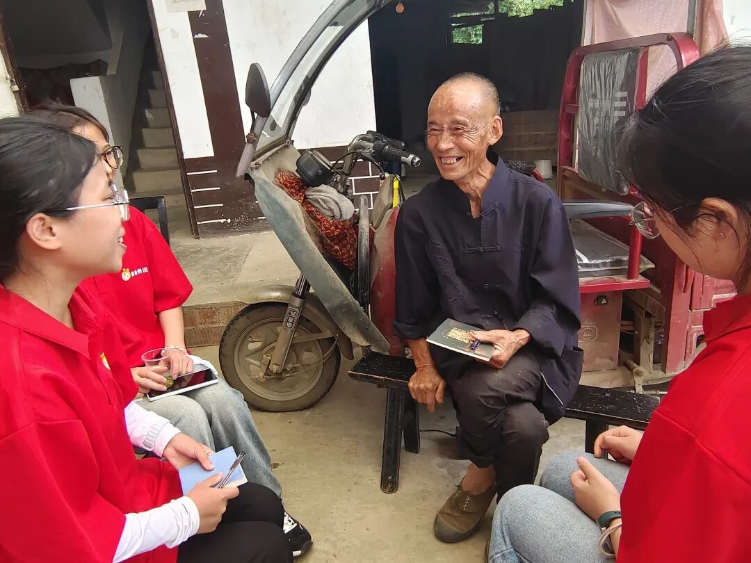 7月12日至13日,实践队以“讲红色经典遵义事,绘振兴壮美乡村图”为主题,用通俗语言向村民宣讲遵义会议历史,阐释“实事求是、独立自主、坚定信念、团结奋斗”的遵义精神内涵。宣讲后,队员们走访老党员曾芝国、黄开文:曾芝国回忆带领村民搞生产的岁月,诠释团结奋斗的真谛;黄开文细数乡村变迁,流露对党的感恩。与老党员的对话,让红色精神的传承变得可触可感。
