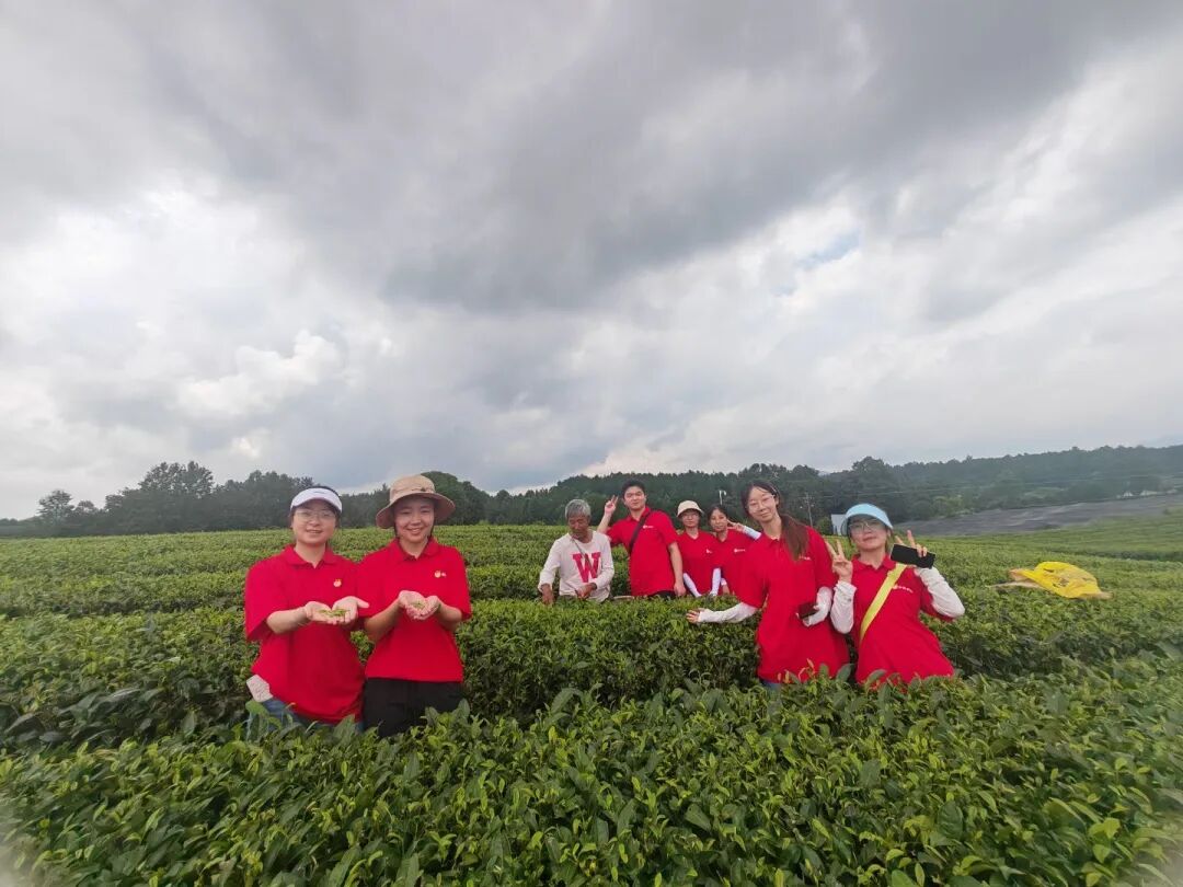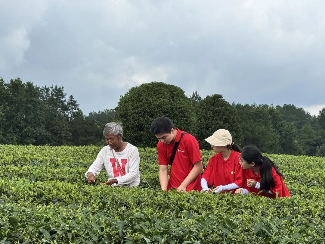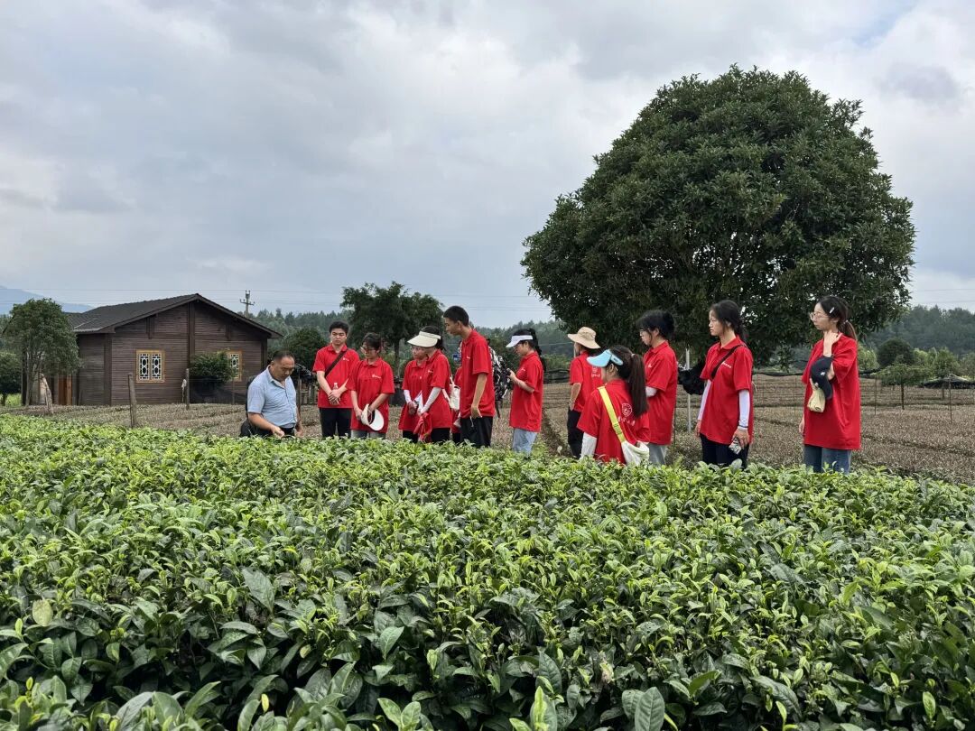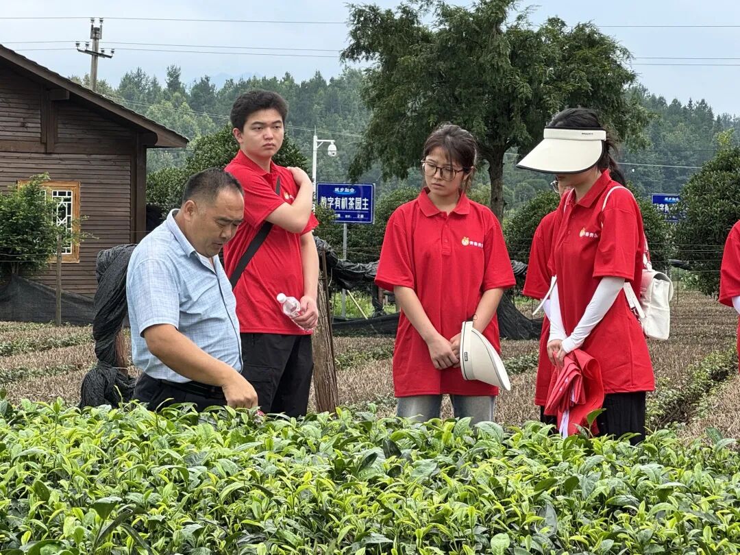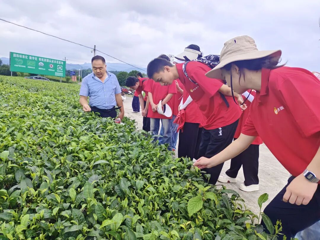 7月11日,团队深入群丰村“大陆壹号”茶园,聆听村监会主任陈昌玉讲述从贫困山村到“茶叶之乡”的逆袭之路。通过参与采茶、观摩“高原春雪”茶企的现代化制茶流程,队员们系统梳理“种植—加工—品牌”产业链条,领悟“党建+产业”模式对乡村振兴的推动作用。党总支书记廖良峰分享的“村民议事会”“茶田网格化管理”等创新实践,更让队员们看到基层治理与生态经济的深度融合。