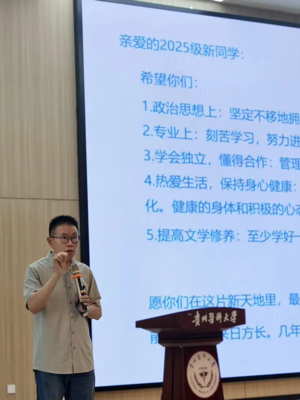 学院党委书记彭安辉为同学讲授“开学第一课”。他从学校发展历史到学院文化传承,再到医学人文素养培育,深入解读学校及学院基本情况、特色办学优势及学生培养举措,旨在帮助同学们更快融入影像学院大家庭,为同学们未来的贵医学习生活筑牢坚实的基础。